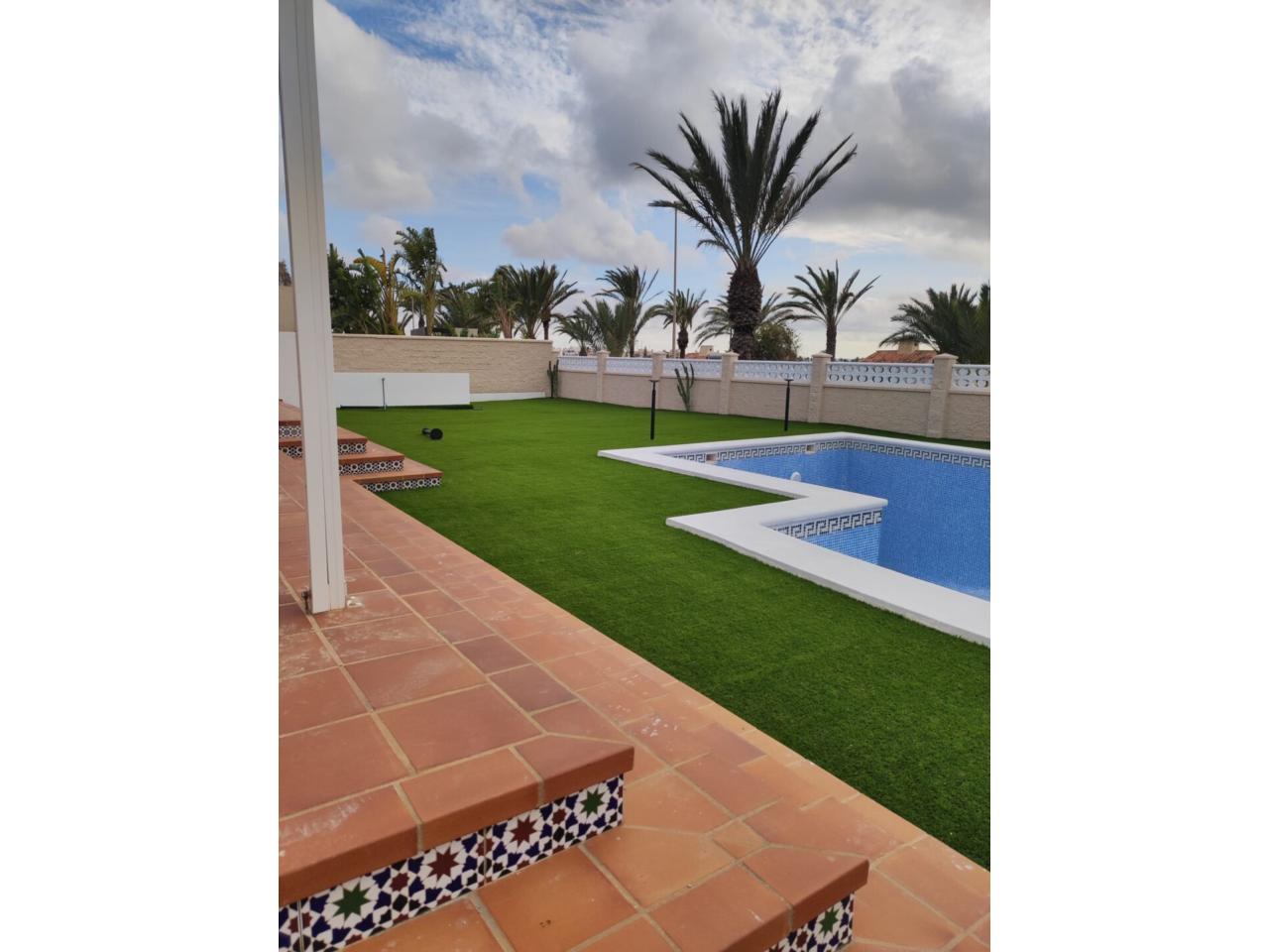 Una de las mejores VILLAS DE ALMERIMAR. con una superficie de 397m2 totalmente reformado y calidades de primera, imaginate despertarte en el PARAISO. Donde la PAZ y la TRANQUILIDAD imperan en el entorno, con vistas al CAMPO DE GOLF a pocos metros de la playa y del centro en una de las mejores zonas de Almerimar. Disfruta de uno de los mejores climas de Europa, su CAMPO DE GOLF, las playas mediterráneas y su exclusivo puerto deportivo hacen de la costa de Almería uno de los lujares preferidos para la tranquilidad y para vivir en un entorno idílico. UNA PROPIEDAD PENSADA AL DETALLE PARA QUIENES BUSCAN VIVIR CON ELEGANCIA Y BIENESTAR. ¡No pierdas la oportunidad de vivir en este maravilloso lugar! Se distribuye en: ?? 5 dormitorios ??Amplio Salón con chimenea. ??Parcela de 900m2. ??4 Cuartos de Baño ???Cocina Independiente. ??Amplios Armarios Empotrados. ??Piscina. ??Amplias zonas ajardinadas.